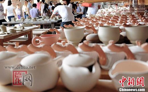 6月1日,華僑大學(xué)境外生來到中國瓷都福建德化月記窯陶瓷文化創(chuàng)意產(chǎn)業(yè)園體驗(yàn)做陶藝。中新社發(fā) 張勤 攝