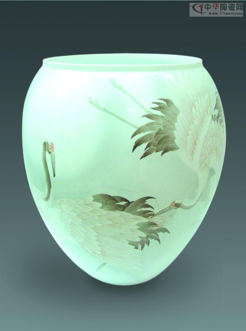 李遊宇的成功,還源自他的藝術(shù)修養(yǎng)和功底。他曾經(jīng)對中國的山水畫十分著迷,尤其是在大學(xué)期間,受教于我國當(dāng)代山水畫大師白雪石、李可染兩位先生,每日都作畫至深夜。長期的堅(jiān)持不懈,一筆一筆的苦練,不僅使他純熟地掌握了山水畫的基本技法,更使他繼承了國家一代藝術(shù)宗師的學(xué)養(yǎng),對中國傳統(tǒng)文化產(chǎn)生了深刻認(rèn)識(shí)與感悟。他之所以能夠創(chuàng)作出獨(dú)具特色的漢光瓷裝飾性繪畫,與他中國傳統(tǒng)繪畫的功底和文化修養(yǎng)密不可分。他的“花鳥”系列作品,以牡丹、玉蘭、梅、雛菊、海棠、芙蓉、鷺鷥、和平鴿、丹頂鶴、鸚鵡等花鳥為題材,巧妙地將中國傳統(tǒng)工筆畫的技藝與釉下彩的特殊工藝結(jié)合起來進(jìn)行繪制,淡淡的灰色與潔凈的白色相互映襯,十分典雅。中國陶瓷歷史悠久,裝飾題材涉及人物、花鳥、山水、飛禽走獸、神話故事、日月星辰等等,充分地體現(xiàn)在中國傳統(tǒng)文化的豐富厚重、博大精深。漢光瓷根據(jù)器物的材質(zhì)和造型來構(gòu)思裝飾的題材、構(gòu)圖、色彩和技法,使之布局合理,相得益彰;中國傳統(tǒng)藝術(shù)的韻味和風(fēng)格通過漢光瓷的造型與裝飾完美地呈現(xiàn)出來。