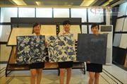 說明:淄博金獅王科技陶瓷有限公司員工正在展示“青花瓷”仿古磚。