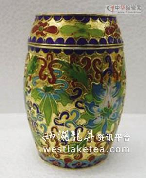 茶葉是茶樹的芽葉通過炒干制作,一旦受潮就會(huì)發(fā)生質(zhì)變,茶葉本身的香氣還易揮發(fā),對水分、溫濕度、光、氧等環(huán)境因素多有要求,所以存放時(shí)使用的盛器、方法比較講究,時(shí)間一長茶葉罐應(yīng)運(yùn)而生。其實(shí)茶葉罐除去它儲存茶葉的本職外,一直受到文人墨客的喜愛,它的材質(zhì)有很多種,木頭、竹子、陶瓷、紫砂、錫、銅、鐵皮、景泰藍(lán)……可謂五花八門,明代嘉靖年間著名詩人徐渭曾經(jīng)寫詩“青籠舊封照谷雨,紫砂新罐買宜興”,里面提到的就是宜興紫砂制作的茶葉罐。劉先生介紹,在2006年中國嘉德春季拍賣中,清乾隆御制紫砂泥繪幽蘭芙蕖圖茶葉罐以27.5萬元的價(jià)格成交。茶葉罐的收藏價(jià)值可見一斑。