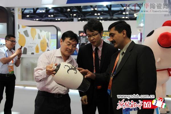 據悉,由中國商務部、北京市政府舉辦的第二屆京交會于5月27日至6月1日在景色秀麗的北京奧林匹克公園國家會議中心舉行。由邯鄲市磁縣冀南新區(qū)磁州窯研發(fā)基地創(chuàng)作的,磁州窯藝術作品代表河北省藝術精品之一參加了展出。參展會上,國內外客商、各國駐華使節(jié)、藝術收藏人士紛紛在磁州窯藝術作品展柜旁駐足觀看,磁州窯“黑與白藝術”新穎古樸、瀟灑自如、生動精美,受到一致好評。