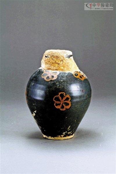望野博物館館長閻焰向記者介紹,這只黑釉紅花盤口瓶,出土?xí)r封泥上帶有明顯的印戳,是古代酒類及稅務(wù)管理的標(biāo)志,其瓶內(nèi)的酒由于揮發(fā)的原因只剩下小半。他又拿出一件黑彩白粉花帶蓋執(zhí)壺,說此器窯工精美,是宋金時期長治窯產(chǎn)品;還有一件黑褐釉蒺藜炮罐,是元明時期長治窯產(chǎn)品,在當(dāng)時屬于較先進(jìn)的“軍工”產(chǎn)品。