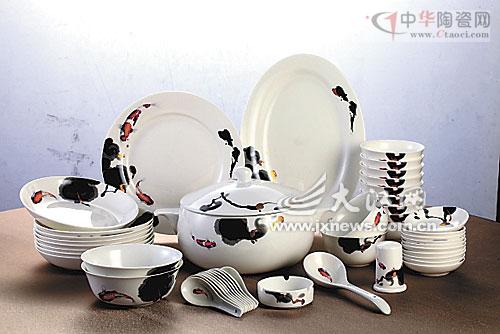 由江南藝術館獨家制作的水墨錦鯉禮品瓷,為56頭釉中拍金骨質瓷(10人餐具套組),整套作品制作精美,質量上乘,尤其是畫面整體采用中國水墨畫風格,一對錦鯉在清水里暢游,幾滴墨汁在水中自然暈染、散開,簡約隨性的線條,悠揚頓挫的墨色。仿佛一幅流動的中國畫卷,幾縷金色點線更是增添了富貴氣息。這種市場上并不多見的水墨禮品瓷將濃郁的藝術氣息更加融進我們的點滴生活。此外,江南藝術館推出的梅蘭竹菊四蓋碗也頗受買家好評。