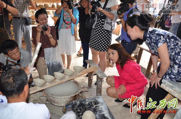 聯(lián)合國民間藝術(shù)組織國主席陳平應(yīng)邀參加剪裁儀式,并參觀了景德鎮(zhèn)傳統(tǒng)圓器脫胎作坊,與工藝大師進(jìn)行了交流。