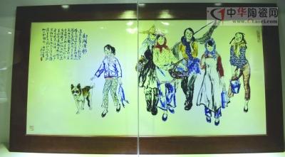 這幅《鄱湖漁歌》是李一新2012年創(chuàng)新之作,采用高溫顏色釉裝飾工藝,在胚胎上作畫后,再上一層釉,在1300度的高溫下燒制而成。畫面白底釉面上,一群衣著純樸的漁家姑娘打漁而歸,她們邁著輕快的腳步,有的提桶,有的挎籃,臉上掛滿笑容,由內(nèi)而外地散發(fā)著幸福的喜悅,旁邊一只憨態(tài)可掬的小狗也悠閑地邁著步子,同游歸來。