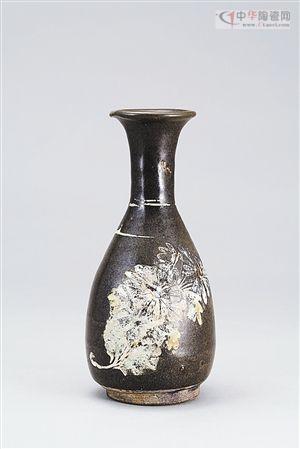 金代 長(zhǎng)治窯 黑釉紅綠彩玉壺春瓶