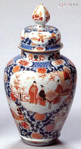 圖4 18世紀初日本有田窯牡丹紋彩瓷罐
