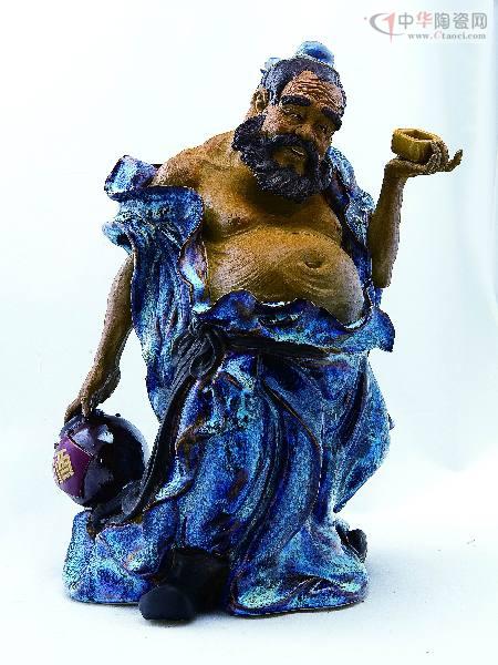 黃志偉在石灣陶藝的傳統(tǒng)特色之上結(jié)合中國畫推崇運用線條刻畫的特點,開創(chuàng)“線塑”技法。中國畫中有所謂“十八描”的技法,以線的組合表現(xiàn)形體的塊面和體積,還有寫意潑墨的畫法,突出表現(xiàn)神似,兩者往往交錯運用。而“線塑”的特點在于用泥條作為線條粘捺于坯體的塊面結(jié)構(gòu)之中,線面結(jié)合工意交融,以表現(xiàn)作品的主題神韻。在使用傳統(tǒng)符號表現(xiàn)地域特色的同時,不斷深化和加強“線塑”形式的功能,以獨特的形式感和對泥捏線條錯落有序的運用,將現(xiàn)代藝術(shù)理念融入到立體雕塑中,創(chuàng)造出豪放、隨意、空靈的結(jié)構(gòu)與節(jié)奏感,傳遞出散淡、閑逸、率真的意趣。