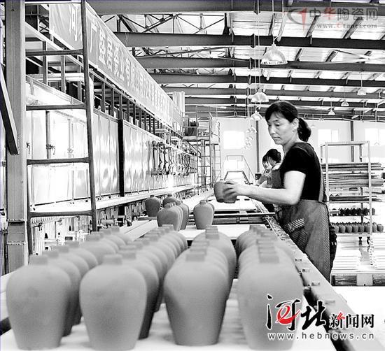 圖為廣盛居陶瓷酒瓶生產(chǎn)線。