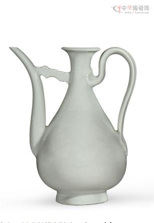 明 永樂 甜白釉暗刻花卉紋把壺 高: 30公分
