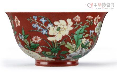 在當(dāng)前拍賣市場(chǎng)中,清三代瓷器的價(jià)格已遠(yuǎn)遠(yuǎn)超過宋代官窯中的定窯和鈞窯。本場(chǎng)盈時(shí)拍賣相當(dāng)難得地集齊了清三代代表官窯之重器,件件珍罕,包括了清康熙年制“珊瑚紅地五彩九秋同慶圖御制碗”,為康熙時(shí)期清宮御瓷之精品佳作。