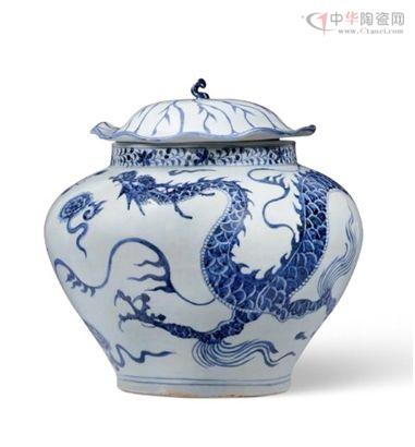 元代是中國(guó)陶瓷史上的一個(gè)重要時(shí)期,本場(chǎng)拍品中的“青花龍紋蓋罐”,器形沉穩(wěn),線條剛勁。所施白釉白中泛青,晶瑩透亮,青花發(fā)色濃艷,鐵斑凝聚,深入胎骨。所繪龍紋風(fēng)格與英國(guó)大維德藝術(shù)基金會(huì)所藏元至正十一年青花大瓶上的龍紋畫法、神態(tài)一致,此類傳世元青花大罐荷葉蓋多已遺失,而作品保存完好,更顯難得珍貴。