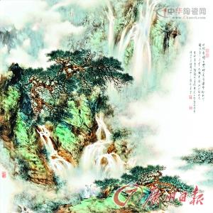 此次展出的李小聰作品《日照香爐生紫煙》、《倚石臨泉圖》、《翠壑飛泉》、《野亭會友》、《行旅圖》、《門前自有千竿竹》等等,恰如當代陶藝界泰斗王錫良先生所評價:“潮人李小聰所作粉彩山水瓷畫,深得古法精髓,意境深幽,取法聚各家之長,有宋人山川之渾雄,有清人林木之秀潤,色調(diào)古雅。觀其畫作,仿佛步入郁然深秀、山色蒼茫之境界,頓覺遠離都市之塵囂。”