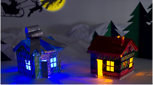 英國Bare Conductive提供的電子涂鴉導電房屋建筑套裝之鄉(xiāng)村書屋一定會讓你心動!按照內(nèi)裝的指導手冊詳細步驟,結(jié)合自己的創(chuàng)意,組裝裝飾房子,然后發(fā)揮你理工男的認真風格(ps:只要按照說明書來做,文科生也可以做理工的事兒),繪制好電路,安裝好組件,通電后兩間溫馨的小房子就完工啦~隨著光線漸暗你的房子會開始發(fā)光!漆黑的夜晚,讓DIY發(fā)光小房子渲染出夢幻的氛圍,陪伴她安然進入夢鄉(xiāng),很有意境啊……