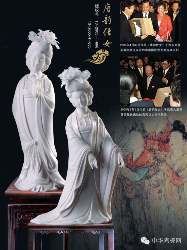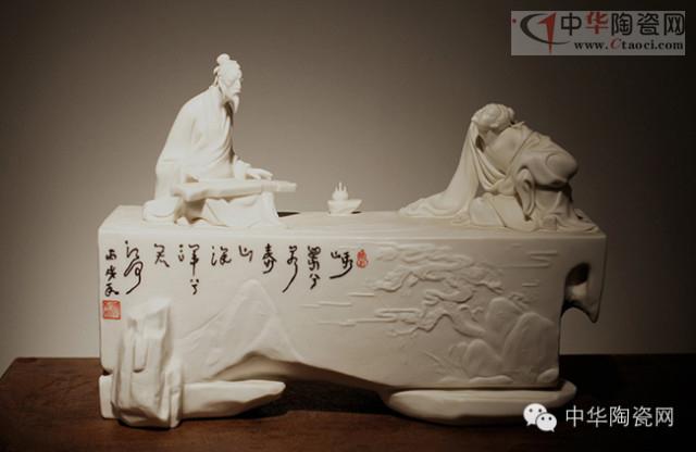 初次見到顏松柳,斯文、從容,微笑中散發(fā)著平和恬淡的儒雅。作為德化瓷雕的中堅(jiān)力量,其作品在傳統(tǒng)工藝的基礎(chǔ)上加以豐富的想象力,極富創(chuàng)意,韻味十足,備受市場青睞。這位瓷壇后起之秀不但引起業(yè)界的關(guān)注,還曾榮獲“中國收藏家喜歡的陶瓷藝術(shù)大師”的榮譽(yù)稱號。他的作品《春風(fēng)得意馬蹄急》收藏于中國美術(shù)館、英國珍寶博物館;《一葦渡江》收藏于英國珍寶博物館、福建博物院。值得一提的是,與他人合作的大形組雕《召見使節(jié)》和《唐韻仕女》被西安市政府選為珍貴禮品贈予國民黨榮譽(yù)主席連戰(zhàn)和親民黨主席宋楚瑜。
