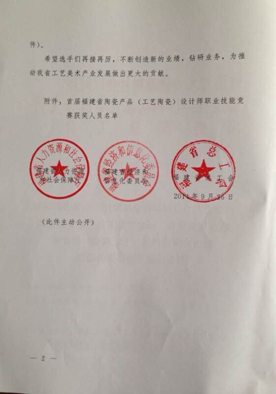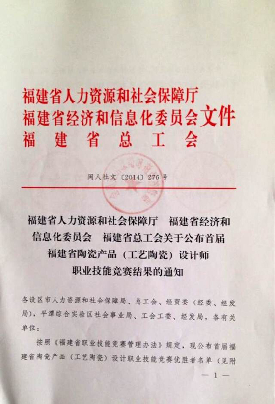 首屆福建省陶瓷產(chǎn)品(工藝陶瓷)設(shè)計(jì)師職業(yè)技能競賽優(yōu)勝者名單