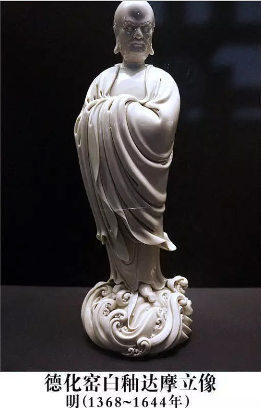 在故宮博物院收藏的35萬件古陶瓷中,有700多件明清時(shí)期的德化窯瓷器,其中54件屬于清宮舊藏,是故宮博物院收藏明代地方窯瓷器的一個亮點(diǎn),明代制品多達(dá)200余件,其中更以何朝宗款宗教人物造像為佳。在文華殿陶瓷館的常設(shè)展上,署有明代德化瓷塑巨匠何朝宗名款的觀音坐像、鶴鹿仙人尤其令人稱道,其中以傳世瓷塑名作《達(dá)摩立像》最為精彩的。