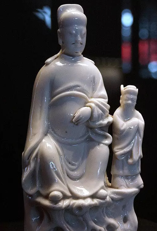 在故宮博物院收藏的35萬件古陶瓷中,有700多件明清時期的德化窯瓷器,其中54件屬于清宮舊藏,是故宮博物院收藏明代地方窯瓷器的一個亮點,明代制品多達(dá)200余件,其中更以何朝宗款宗教人物造像為佳。在文華殿陶瓷館的常設(shè)展上,署有明代德化瓷塑巨匠何朝宗名款的觀音坐像、鶴鹿仙人尤其令人稱道,其中以傳世瓷塑名作《達(dá)摩立像》最為精彩的。