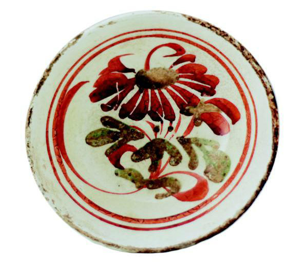 長(zhǎng)治窯生產(chǎn)的紅綠彩瓷,彩色呈色穩(wěn)定,在繪畫手法和色彩的運(yùn)用上已經(jīng)達(dá)到了較成熟的階段。胎色大部分為土黃色,基本燒結(jié),但斷面無(wú)玻璃光澤。經(jīng)測(cè)試,燒成溫度在1140℃左右。有少量灰胎器物,可以明顯看出是火候過(guò)高所致。白釉、綠彩、黃彩都有細(xì)密紋片,而紅彩沒有這種現(xiàn)象。紅彩的色調(diào)多呈棗紅色,但由于色料分散得不太均勻,有深淺不均的現(xiàn)象,表面不甚光滑平整,有毛糙的顆粒狀凸出物,這是彩料顆粒細(xì)度不夠所造成的。長(zhǎng)治窯的黃彩和綠彩則呈色純正。