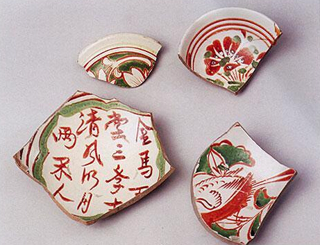 從目前發(fā)現(xiàn)看,紅綠彩瓷的出土地區(qū)和原產(chǎn)地區(qū)在裝飾上存在差異。出土地區(qū)指產(chǎn)品流通使用地,系生產(chǎn)窯口以外的地區(qū)。這類遺物在原產(chǎn)地(窯址)中不可能見到,比如紅綠彩貼金器,它是成品器流通到市場(chǎng)后,使用者依其所需再進(jìn)行加工而成的器物,在窯址中不可能找到。這有些類似后世的琺瑯彩瓷以及外銷中東、歐洲的大量青瓷、青花瓷,它們都經(jīng)使用者依自己需要而進(jìn)行包嵌金銀的再加工。原產(chǎn)地區(qū)指燒造窯口。金元紅綠彩瓷的燒造窯口現(xiàn)已確認(rèn)的有前面所列幾處,基本上為金后期至元中期燒造地,元代中晚期乃至明初北方燒造紅綠彩瓷的窯口目前還不能確定,有可能為前面確認(rèn)的燒造地點(diǎn),也可能另有所在。經(jīng)調(diào)查發(fā)現(xiàn),紅綠彩瓷器的窯址在山西、河南、河北等地還有很多,約在30處以上。