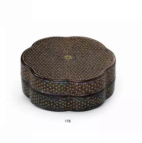 晚明 黑漆嵌螺鈿朵花紋花形香盒