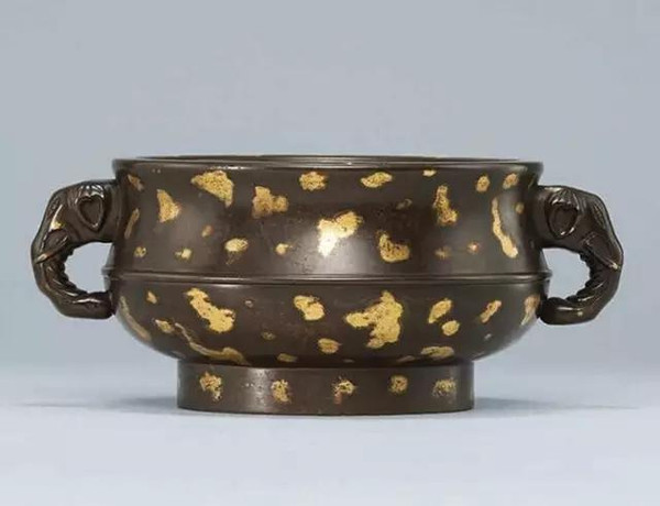 清十八世紀(jì) 灑金銅象耳簋式爐