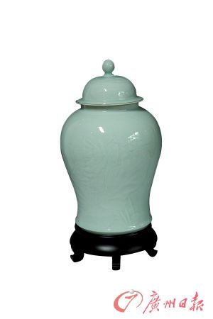 龍泉青瓷始燒于西晉,南宋中晚期步入鼎盛,其中哥窯與官窯、汝窯、定窯、鈞窯并稱為宋代五大名窯。當(dāng)代陶藝家們?cè)诶^承傳統(tǒng)工藝的基礎(chǔ)上,又以現(xiàn)代抽象藝術(shù)入瓷,將龍泉青瓷推向了新的高度。此次展出的中國(guó)工藝美術(shù)大師夏侯文的作品《將軍罐》,線條簡(jiǎn)練,優(yōu)雅大氣,整體造型巧妙,強(qiáng)調(diào)局部圖案的裝飾效果。夏侯文的刻花線條柔和舒展,長(zhǎng)勁有力,具有飽滿的立體感,在粉青、梅子青的器皿上刻出梅花的傲雪枝干、水仙的冰姿玉骨、紫藤的優(yōu)美之態(tài),令單色釉在寧?kù)o與冷艷中充滿生命的質(zhì)感。