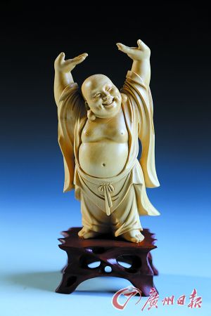 黃楊木雕則是我國(guó)木雕藝術(shù)中的一個(gè)主要種類,因取材黃楊木而得名。樂清黃楊木雕在歷史上一直受到文人、墨客、商賈和收藏家的寵愛,也是當(dāng)今收藏的“新貴”。此次參展的黃楊木雕作品,匯聚了多位國(guó)家級(jí)工美大師的佳作,如中國(guó)工藝美術(shù)大師高公博創(chuàng)作的《老子》,利用黃楊木塊劈開后呈現(xiàn)的自然紋理,因勢(shì)造型,點(diǎn)化自然,跳出了“肖形”的樊籠,大膽追求“神似”,從而出離了“匠氣”藝術(shù)的構(gòu)思。畢業(yè)于中央工藝美術(shù)學(xué)院的中國(guó)工藝美術(shù)大師王篤芳,其黃楊木雕作品《托天彌勒》,其刀法韻味與形式,不僅使人感受到大師對(duì)歷史傳統(tǒng)的深刻理解與傳承,也體現(xiàn)出他對(duì)現(xiàn)代雕塑藝術(shù)的借鑒。