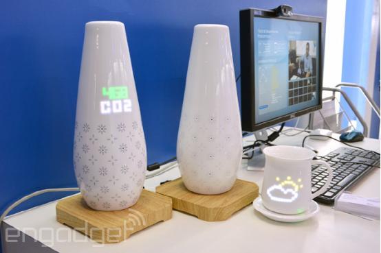 另外一款智能花瓶,在瓶體內(nèi)添加了空氣質(zhì)量傳感器,可以顯示當(dāng)前空間的顆粒物水平、二氧化硫和二氧化碳含量,已經(jīng)溫濕度等信息。目前這款智能花瓶的價(jià)格ODM公司還沒有對(duì)外公布,不過考慮到前面水杯的價(jià)格以及內(nèi)置的各種復(fù)雜傳感器,相信這款體積更大的智能花瓶絕對(duì)同樣不會(huì)便宜。