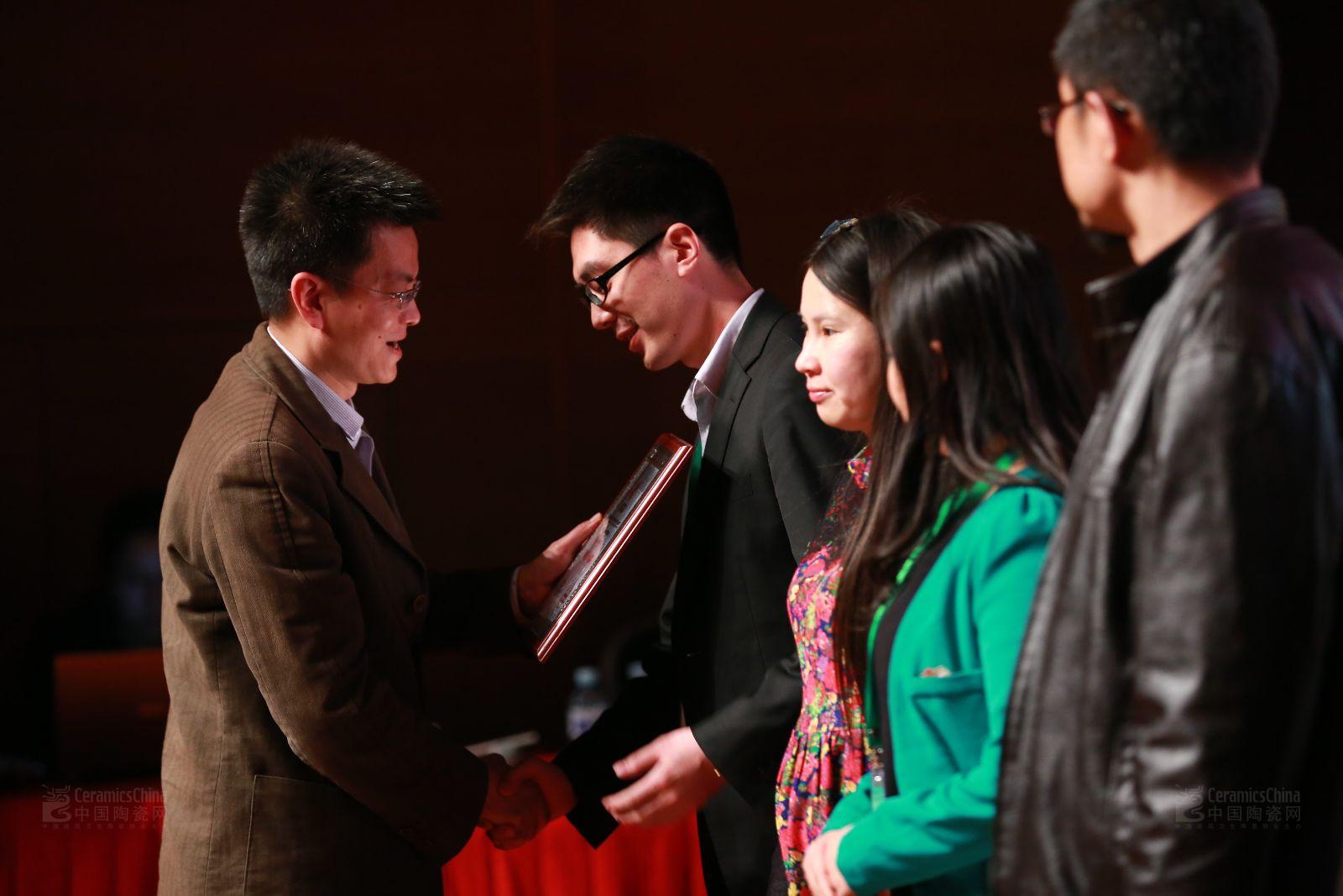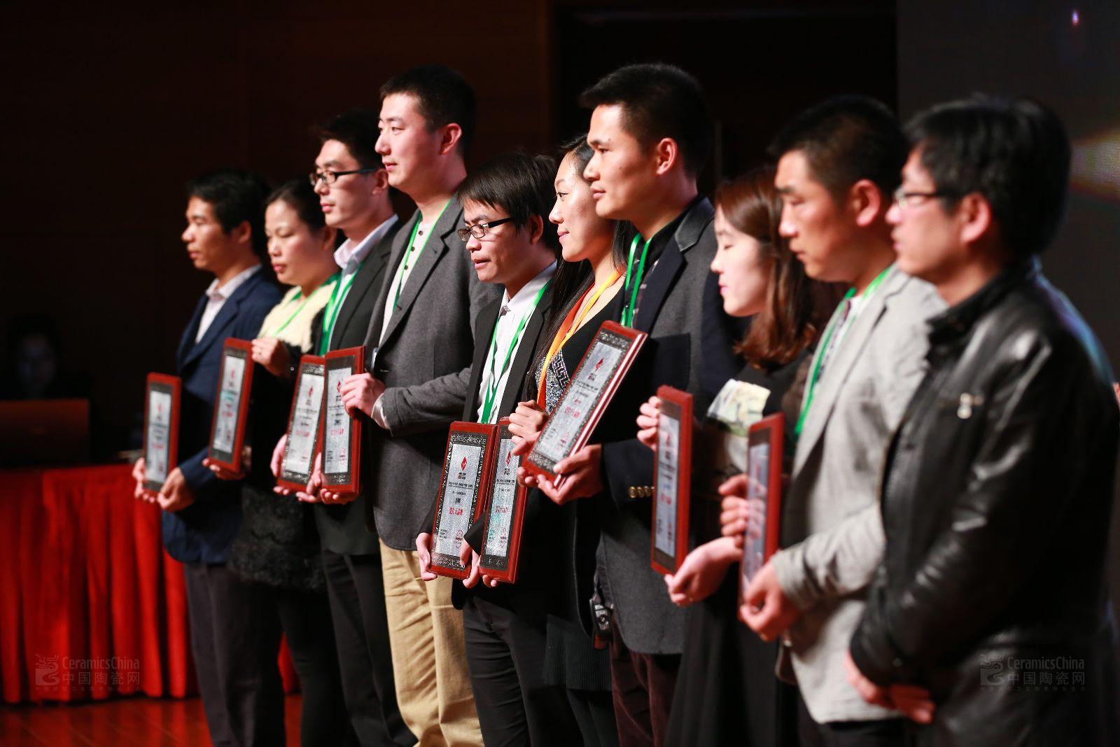 東鵬瓷磚代表(左一)上臺(tái)領(lǐng)“陶瓷十大品牌”牌匾
