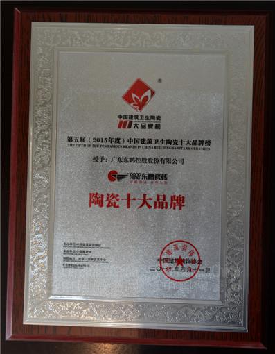 東鵬瓷磚獲得“陶瓷十大品牌”稱號(hào)