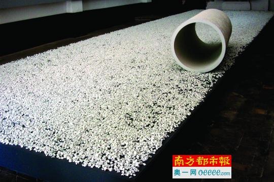 東方展廳的藝術家朱樂耕,出生于陶藝圣地景德鎮(zhèn),父親也是著名陶瓷藝術家。他的大型作品《天水之鏡》,紅色的背景上輔以嬰兒般的云朵和五顏六色的彩石,有一種女媧補天式的絢爛和神秘。“未來的城市將由生產(chǎn)型城市轉變?yōu)榄h(huán)保的、低耗能城市。藝術家將參與未來城市的建筑,因此,我致力于探討城市空間里陶瓷藝術的可能性。”朱樂耕告訴南都記者。