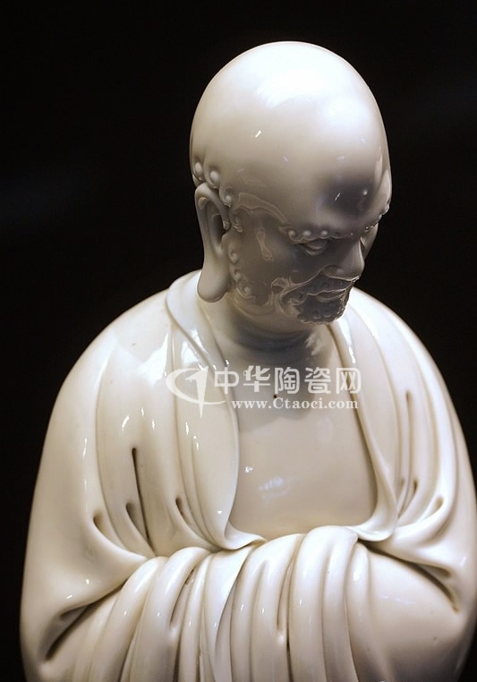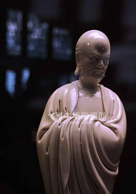 2014年11月26日,香港佳士得2014年秋拍“重要中國瓷器及工藝精品”專場在香港會議展覽中心舉槌。以其類似的作品,明16世紀德化白釉達摩立像以1444萬港元成交。