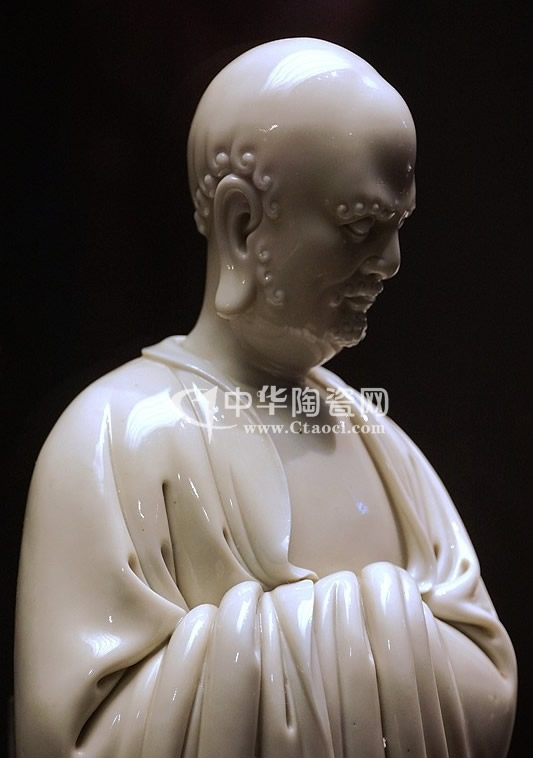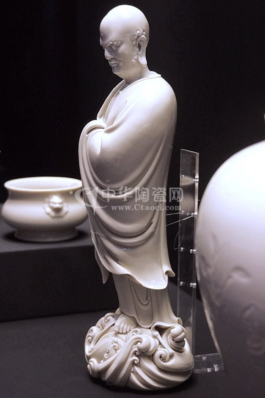 故宮博物院自20世紀50年代設立陶瓷陳列專館以來,一直都開辟明代德化窯瓷器陳列專柜,所展出的德化窯“何朝宗款”白釉達摩立像、觀音像等,經(jīng)常引來大批中外游客駐足觀看,贏得他們交口稱贊。