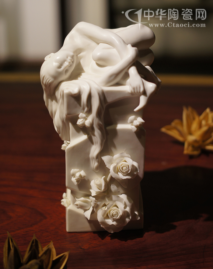 作品用電窯燒成,歷經(jīng)36小時(shí)的升溫、恒溫、保溫,燒成溫度達(dá)到1320度,成品的高度為25公分。德化優(yōu)質(zhì)的中國(guó)白瓷泥,使整件作品達(dá)到滋潤(rùn)如玉的藝術(shù)效果,并結(jié)合傳統(tǒng)手工捏花更好地展現(xiàn)出浪漫的視覺(jué)感受。