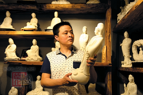 1982年出生的林建平,自幼酷愛陶瓷,18歲開始學(xué)習(xí)陶瓷雕塑技藝。經(jīng)過十多年的學(xué)習(xí),他2012年自立門戶,創(chuàng)辦了“德化縣建平瓷藝研究所”。