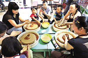 7月20日,孩子們?cè)诩议L(zhǎng)的陪同下在蘭州陶風(fēng)瓷里陶畫(huà)坊進(jìn)行陶瓷DIY。時(shí)值2015年暑期,眾多市民紛紛帶著孩子學(xué)習(xí)陶瓷制作技術(shù),孩子們?cè)谂c泥巴的親密接觸中,既得到了快樂(lè),又學(xué)到了制陶技術(shù)。記者徐曉君攝