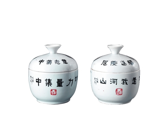 此次還有別出心裁的瓷器上印制著“意志集中、力量集中、節(jié)約救國(guó)、一心一意 共赴國(guó)難”等口號(hào),據(jù)介紹這一部分有來(lái)自學(xué)校的教育創(chuàng)意,如一個(gè)花瓶上就書(shū)銘有大字醒目的“為國(guó)干城”以及“永春縣私立中小學(xué)第二屆運(yùn)動(dòng)會(huì)男子個(gè)人優(yōu)勝獎(jiǎng)品”等字樣,將這含義深刻的花瓶作為學(xué)生體育競(jìng)賽的獎(jiǎng)品,教育鞭策學(xué)生奮發(fā)圖強(qiáng)、為國(guó)效力,做國(guó)家的捍衛(wèi)者,飽含著濃濃的保家衛(wèi)國(guó)、抗戰(zhàn)到底的民族情懷。