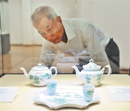 花瓶、茶杯、茶盤(pán)、蓋罐、筆筒……以“紀(jì)念中國(guó)人民抗日戰(zhàn)爭(zhēng)暨世界反法西斯戰(zhàn)爭(zhēng)勝利70周年”為主題的德化抗戰(zhàn)瓷展在德化陶瓷博物館展出,這類(lèi)瓷器自稱(chēng)體系,背后濃縮著德化民眾艱苦抗戰(zhàn)的一段歷史。