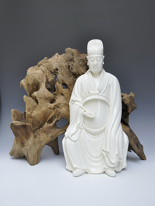 上世紀(jì)九十年代,參觀福建博物館,見何朝宗款“《文昌帝君》造像,為之震憾。2008年與夫君特意往謁,自晨及昏,中午僅以饅頭與礦泉水解饑。2009年三謁,并著手仿制,2014年初稿成,再謁后比對修正,2014年春始定稿。