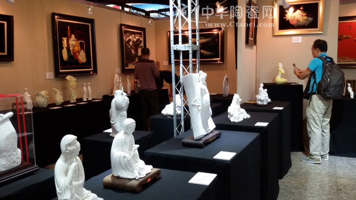 10月15日,由廣州盛滟藝術(shù)主辦,中華陶瓷網(wǎng)、博緣陶瓷協(xié)辦的“‘漆生活.瓷世界’—— 當(dāng)代德化陶瓷名家作品展”在廣州白云機場金龍國際展覽廳展出,本次展覽薈萃了當(dāng)代德化窯實力派名家及新銳青年瓷藝家近百件作品,其中有中國陶瓷藝術(shù)大師蘇獻忠,福建省工藝美術(shù)大師陳明華、陳麗玲、顏柳松、鄭志德,福建省陶瓷藝術(shù)大師蘇志強、張祥琦,新銳瓷藝家李錦峰、林建平、林彬彬、鄭清海等。展出的作品類別覆蓋了傳統(tǒng)佛像、歷史人物、仕女、現(xiàn)代居家擺件、藝術(shù)花瓶等,展覽吸引了眾多收藏愛好者及眾多媒體關(guān)注,并對德化陶瓷的精湛技藝贊嘆不已。