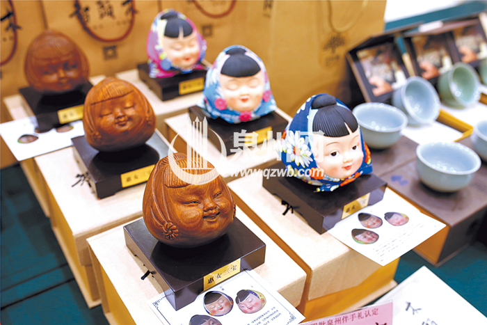 閩南民俗迷你杯上有南音、博餅等習(xí)俗,創(chuàng)意瓷、南少林武術(shù)招式雕像等在創(chuàng)作中巧妙融入泉州元素,讓游客在觀看中感受傳統(tǒng)閩南文化的熏陶。