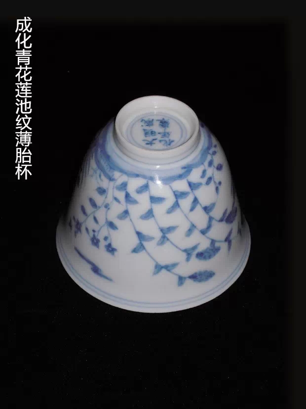 歷朝以來,仿成化器的極多,自明至清均有。但掌握要領(lǐng),仔細辨別,還是不難識別的。如明晚期的仿品,款識文字均不規(guī)整;清康熙仿品款識文字纖弱方正,圖案板滯無神,釉面常成粉白色或青白色;雍正朝的仿品則款識無力,釉面也作粉白色;嘉慶朝的仿品則款識潦草,胎釉粗糙;現(xiàn)代仿品,制作粗糙,畫工拙劣,又毫無舊氣。所有舊氣都是人工做上去的。