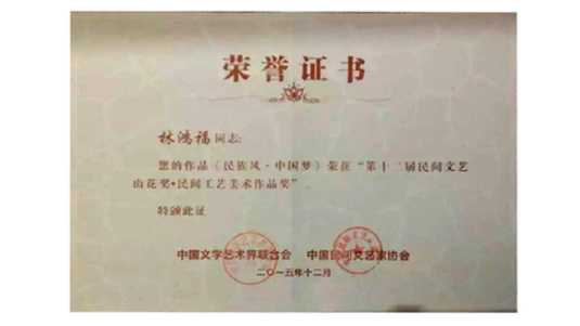 日前,由中國文聯(lián)和中國民協(xié)聯(lián)合主辦的綜合性民間文藝大獎——“山花獎”評選結(jié)果在京揭曉。國家科技部“創(chuàng)新創(chuàng)業(yè)人才”、福建省陶瓷工藝美術(shù)大師林鴻福代表作《民族風·中國夢》榮獲“山花獎”殊榮。