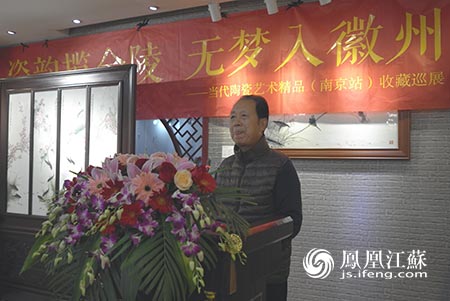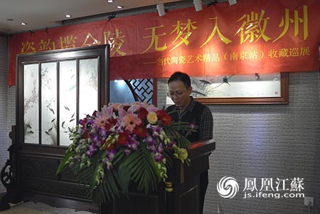 由南京市安徽商會(huì)、《文化徽商》全國(guó)理事會(huì)、 九三學(xué)社江蘇畫(huà)院主辦,江西景德鎮(zhèn)瓷印象有限公司承辦,蘇寧易購(gòu)獨(dú)家冠名的“瓷韻攬金陵,無(wú)夢(mèng)入徽州”當(dāng)代陶瓷藝術(shù)精品(南京站)收藏巡展于2015年12月11日在九三學(xué)社江蘇畫(huà)院隆重展出,南京安徽商會(huì)常務(wù)副會(huì)長(zhǎng)、南京廣廈集團(tuán)董事長(zhǎng)沈長(zhǎng)明先生、南京知何堂文化投資有限公司董事長(zhǎng)周峰等人參加了開(kāi)幕式并發(fā)表致辭。
