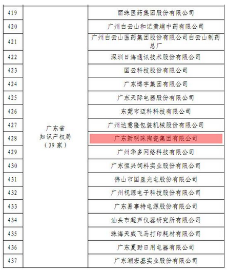 近日國家知識產(chǎn)權(quán)局公示2015年度國家知識產(chǎn)權(quán)優(yōu)勢企業(yè)評審結(jié)果,新明珠陶瓷集團入選2015年度國家知識產(chǎn)權(quán)優(yōu)勢企業(yè),廣東省共有39家企業(yè)入選,新明珠陶瓷集團是陶瓷行業(yè)唯一入選企業(yè)。