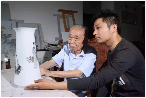 江西省高級(jí)工藝美術(shù)師付建文與外祖父王錫良交流新作品