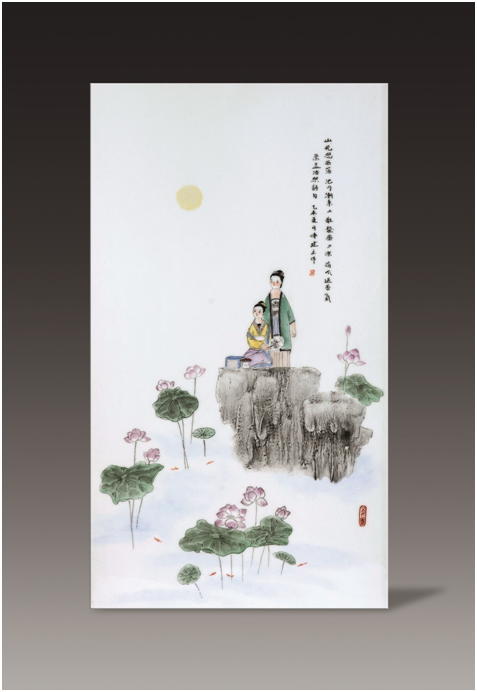 江西省高級(jí)工藝美術(shù)師付建文作品:1尺8粉彩瓷板 孟浩然詩(shī)意