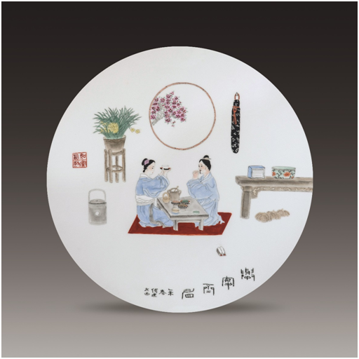 江西省高級(jí)工藝美術(shù)師付建文作品:50×50粉彩瓷板 陸羽品茶