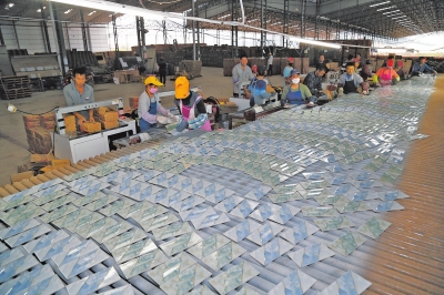 桂平市新金盛陶瓷有限公司二期技改項目2條外墻磚生產線于今年11月順利投產。該項目投資1.5億元,日產外墻磚3萬平方米,預計年產值達2億元。(記者張智榮攝)